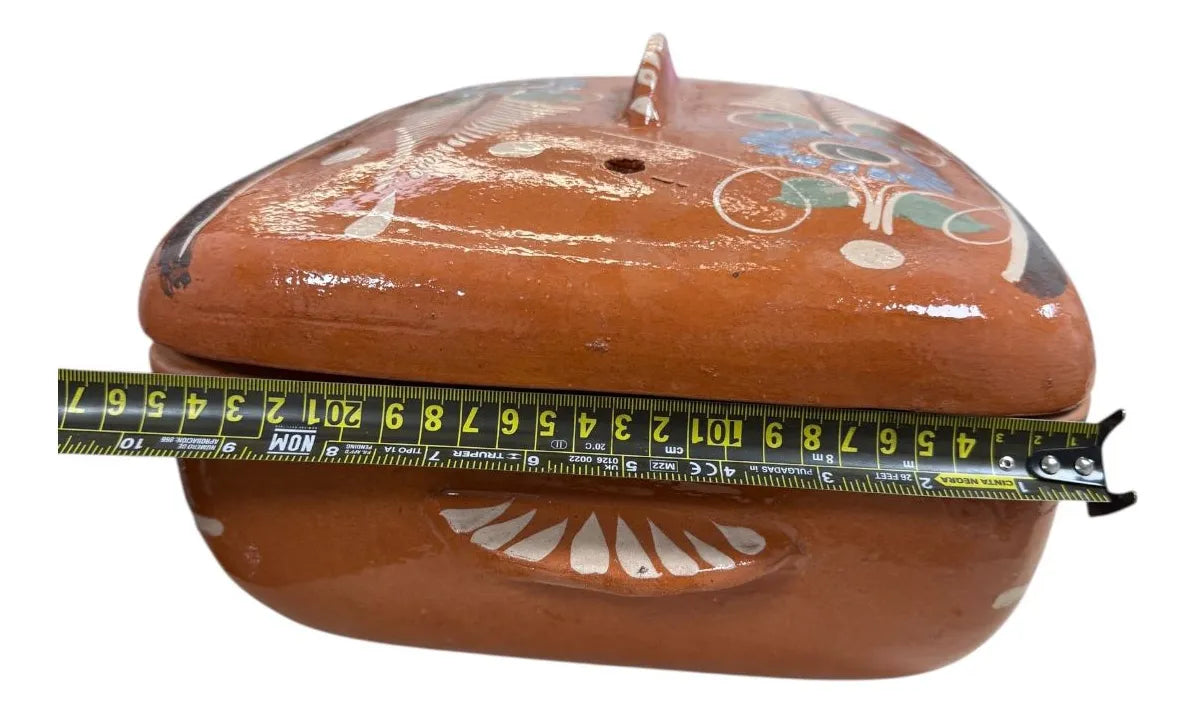 Cazuela pavera de barro con capacidad de 6 litros, incluye su tapadera. Ideal para preparar guisos, moles, caldos y platillos tradicionales. El barro distribuye el calor de forma uniforme, realzando el sabor de los alimentos y conservando la temperatura por más tiempo. Al ser una pieza artesanal, las medidas y el acabado pueden variar ligeramente. Perfecta para cocina y presentación en mesa.